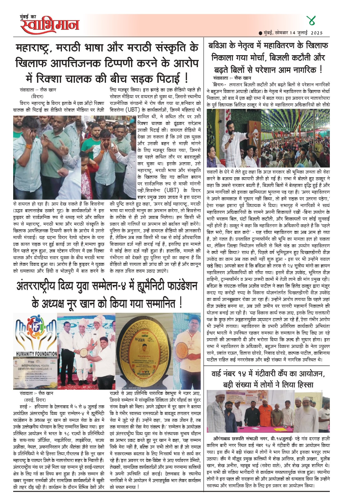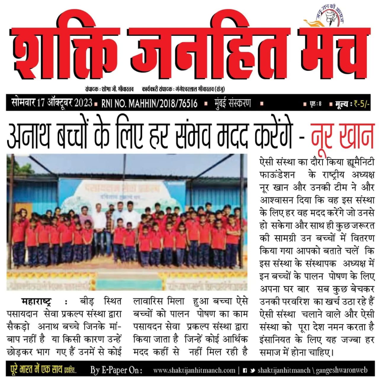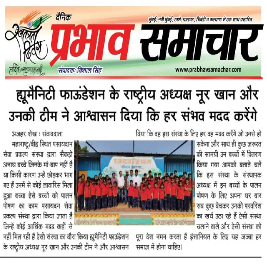 Humanity Foundation is a registered NGO (Registration No: E- 0002781 (PLG)) with 12A, 80G, CSR, and NITI Aayog India certification, working to support poor patients, slum children, widows, and stray animals.